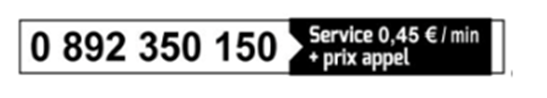 Notre équipe est à votre écoute au 0892 350 150 (service 0,45€/min + prix appel), Lundi au vendredi : 8h – 20h Samedi : 8h – 19h Dimanche: 10h – 19h